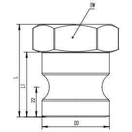 DIMENSIUNE | DN | PARTEA # | DE | L | L1 | SW | Greutate (kg) | ||||